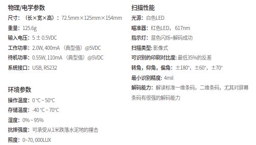 全新的 2D 影像掃描引擎:配合卓越的的二維解碼軟件,進一步優化條碼識讀爽度,可以實現長景深,高速率的二維碼掃描能力,高效保障用戶體驗和操作效率。